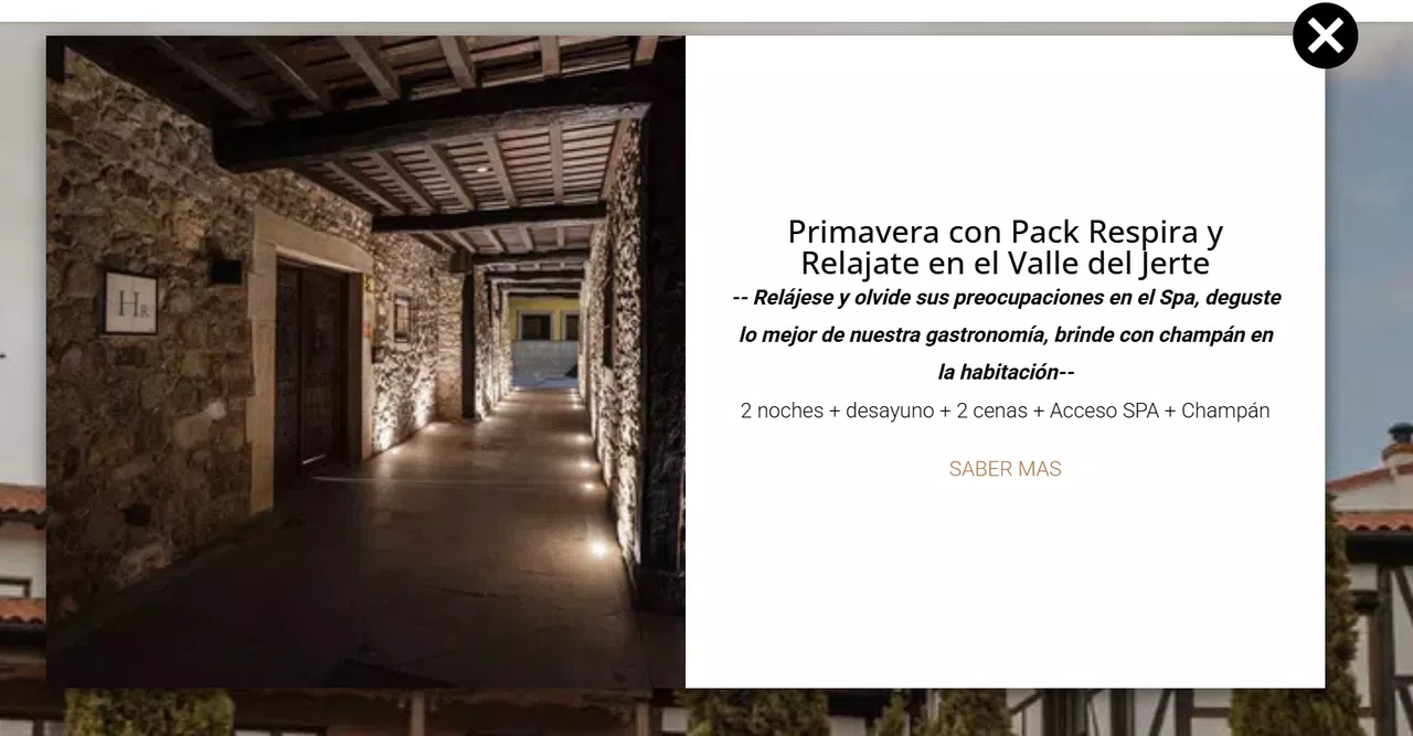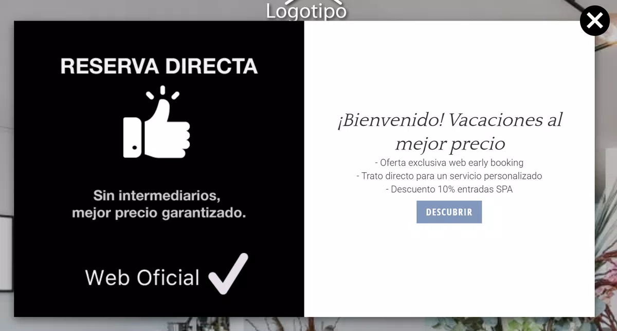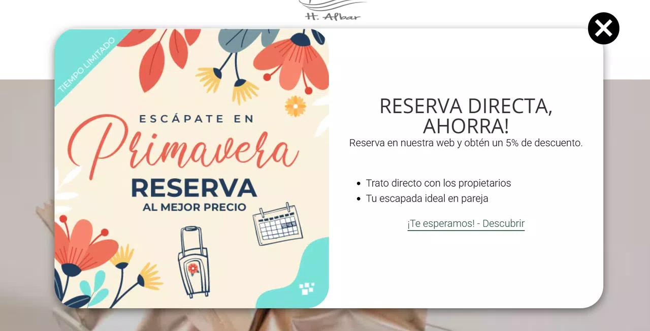 También puedes usar el POPUP para promocionar las experiencias y ofertas de cada temporada.
